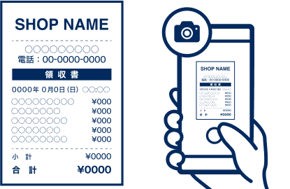 - レシートが長い場合は、該当部分以外を折り曲げた状態で撮影してください。